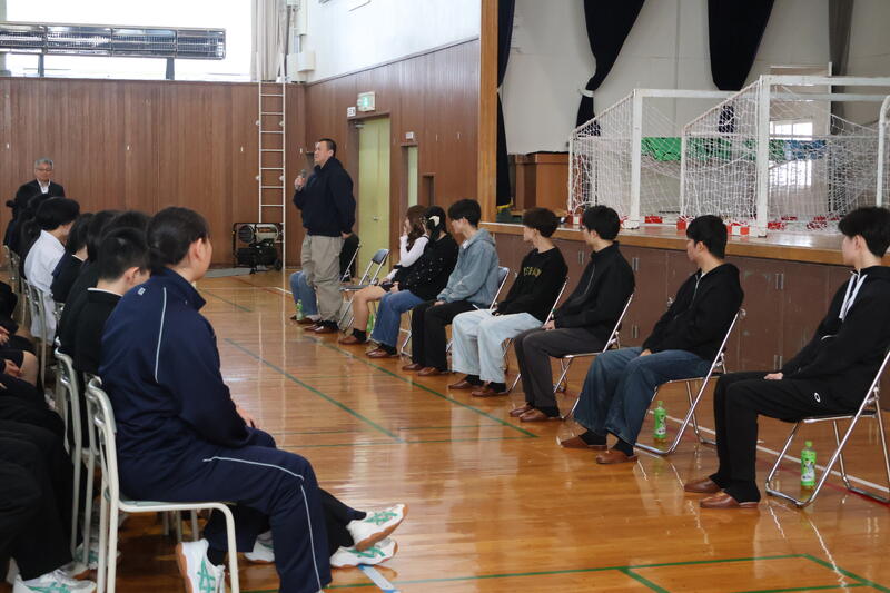 スタンドでは、野球部や引退したハンドボール部員が中心となって応援団を結成。スピーディーな試合展開と次々に決まるゴールに、全校生徒も引き込まれ、会場は熱気に包まれました。 観戦した生徒たちからは、「ハンドボールの試合は見ていて本当に楽しかった」「選手たちが一生懸命で、すごくかっこよかった!」と、興奮冷めやらぬ感想が聞かれました。