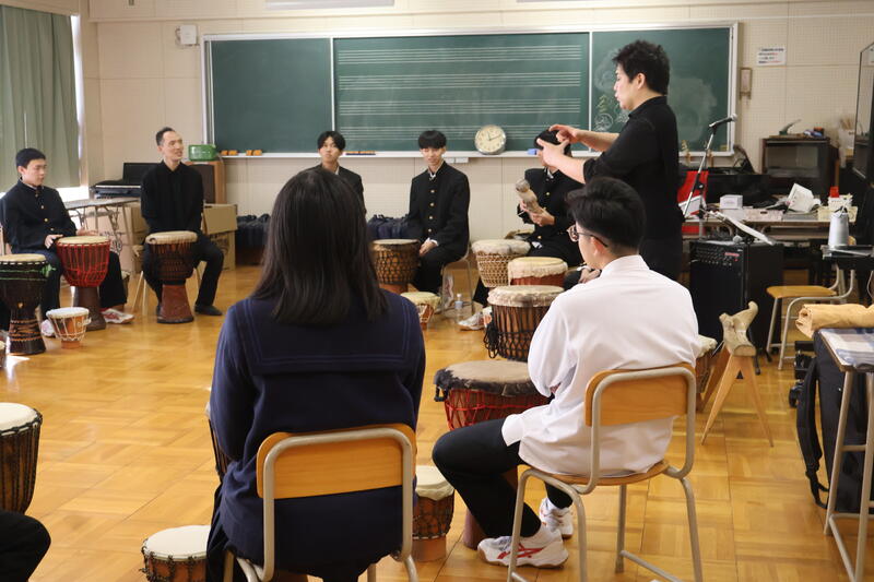 体験の後半では、生徒全員で音を重ねるセッションが行われ、互いの音を聴き合いながら一つのリズムを作り上げる楽しさを味わいました。生徒からは、「初めて触れる楽器で貴重な体験だった」「みんなで音を合わせるのが楽しかった」「またこのような機会があれば参加したい」といった感想が聞かれました。